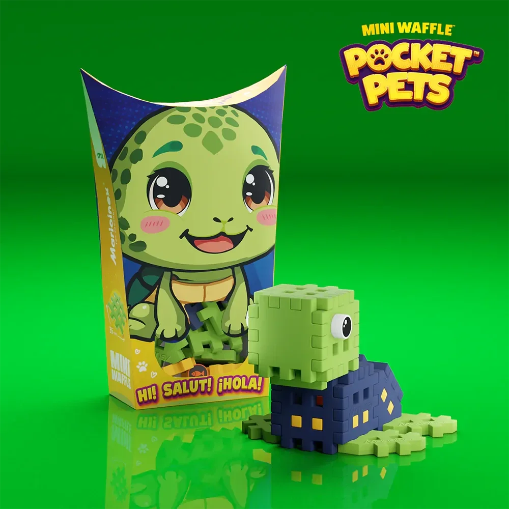 De Mini Waffle - Pocket Pets Turtle is een bouwset waarmee kinderen hun eigen schildpad bouwen. Duurzaam, veilig en boordevol fantasie.